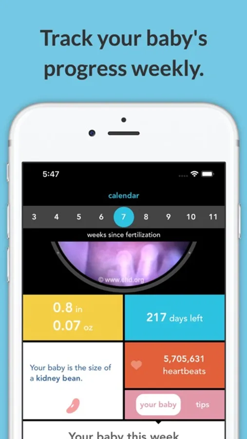 The MyBaby™ Pregnancy Guide will show you and your loved ones what your little one looks like and describe what your baby is doing.