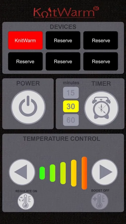 The KnitWarm App connects wirelessly using BlueTooth Low Energy,allowing Real-Time Monitoring & Control for upto 6 KnitWarm products at once.