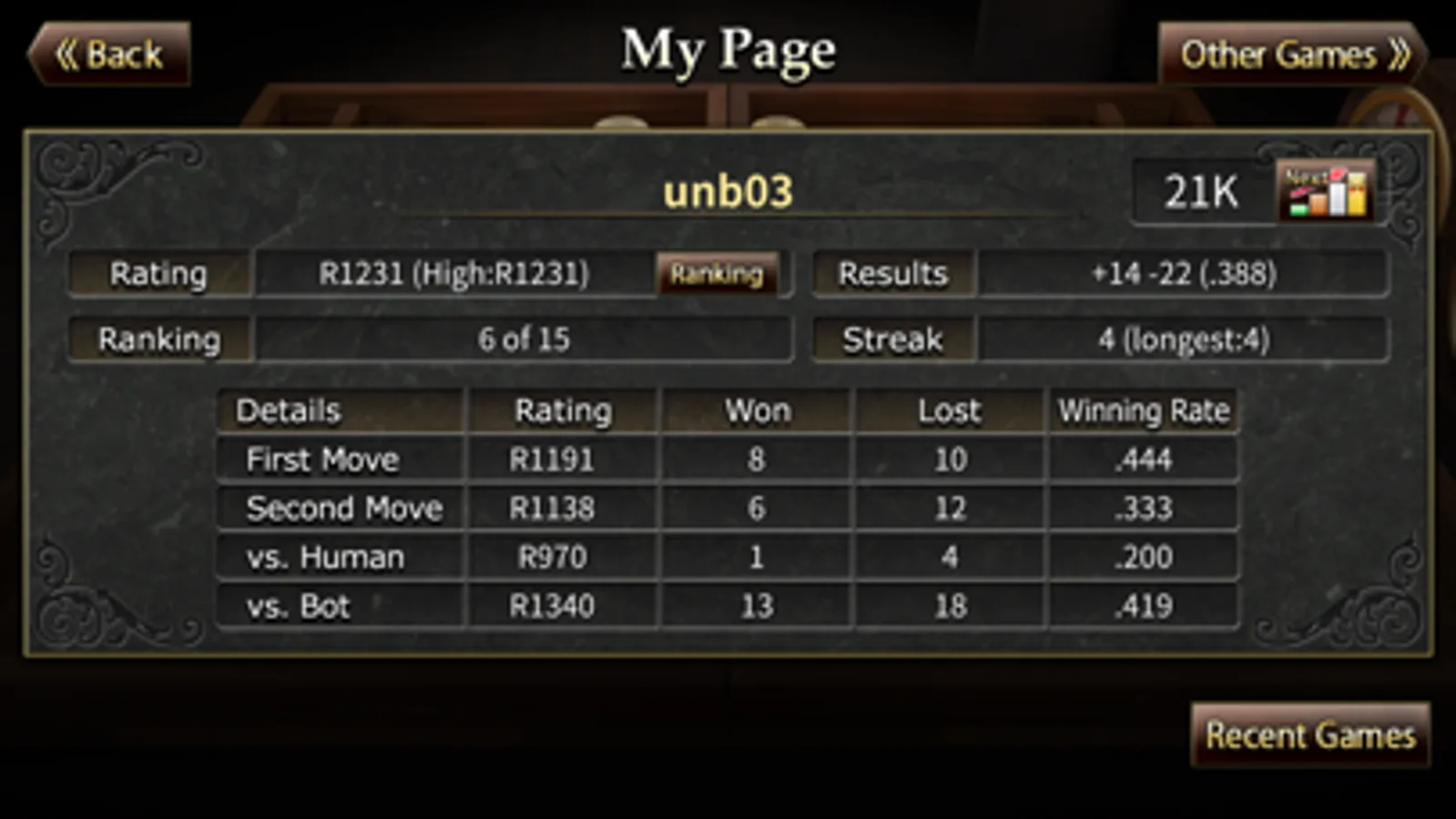 If you make a Quest account you will be able to enjoy other boardgames such as Go, Chess, Shogi, Othello and Gomoku with the same account.