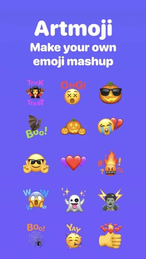 On Artmoji, make your own emoji mashup and share it with friends.