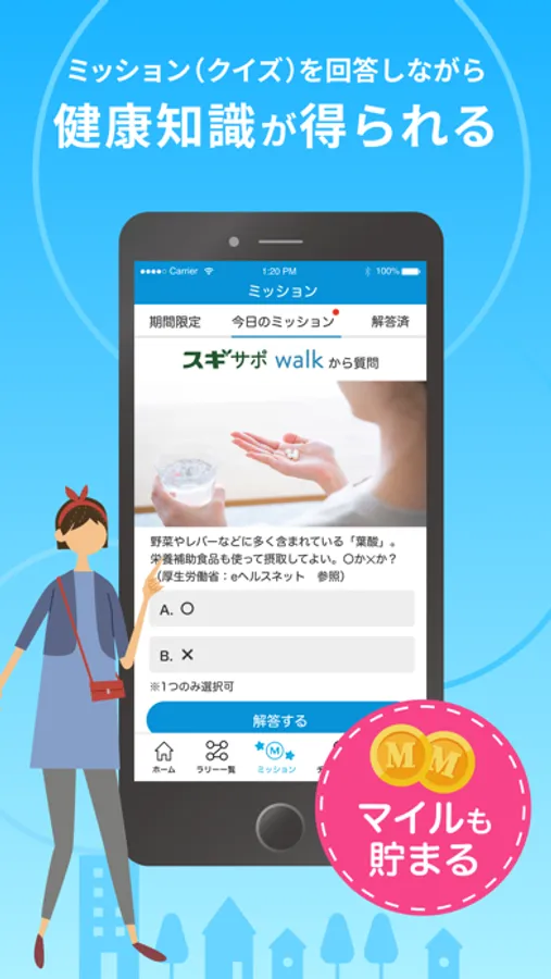 毎日の歩数に応じて到達するラリーポイントでマイルが貯まります