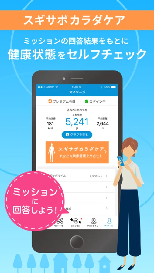 「スギサポwalk」は会員登録により無料でご利用いただけますが、スギサポプレミアムへのご登録で、以下のサービスをご利用いただけるようになります。