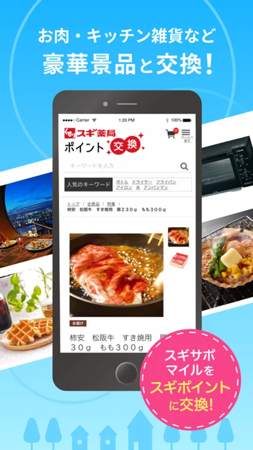 ポイントはスギ薬局店内の商品や家具家電、旅行やグルメなどと交換いただけます
