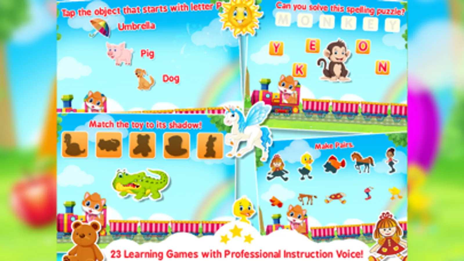 With these games you can learn as well as play: It has two categories: Learn And Play