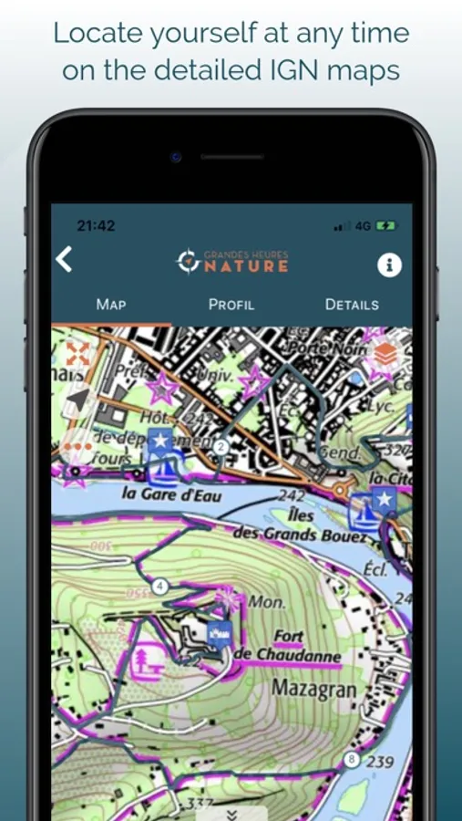 • get your location on the detailed IGN maps with the GPS
