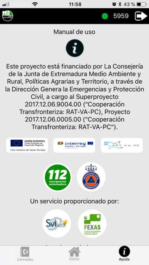 112 Svisual Extremadura is an application that allows deaf people to access the 112 Emergency and Emergencies Center of Extremadura by video call through the SVIsual videointerpretation service. The accessibility to the telephone service 112 of Extremadura that this App provides to the deaf people guarantees the equality of opportunities and the personal autonomy to this group. This app has been developed thanks to the project funded by the Regional Ministry of Environment and Rural Affairs, Agrarian Policies and Territory, through the General Directorate of Emergencies and Civil Protection, in charge of the Superproject 2017.12.06.9004.00 ( "Cross-Border Cooperation: RAT-VA-PC"), Project 2017.12.06.0005.00 ("Cross-Border Cooperation: RAT-VA-PC").