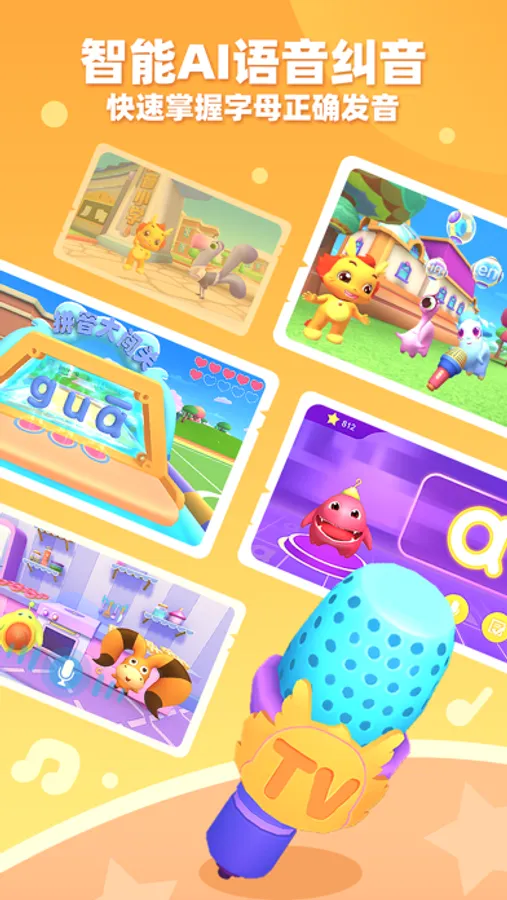 形式多样的语音互动,将拼音融入到语境当中,让孩子主动开口说拼音。采用语音识别功能,让孩子学会拼音的正确发音。智能AI语音评测,纠正孩子错误发音。