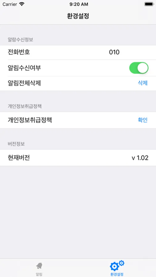 Notification [Receive / Reject] can be set through environment settings.