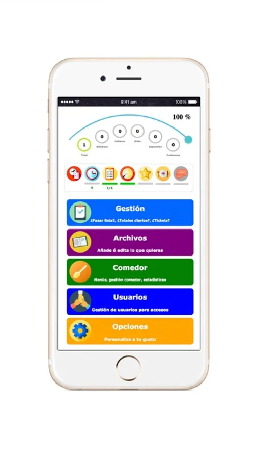-No solo poder descargar los menús y recomendaciones sino poder llevar a cabo un control exhaustivo y perfecto de todas las asistencias, comunicación, observación y visualización de datos de los alumnos.