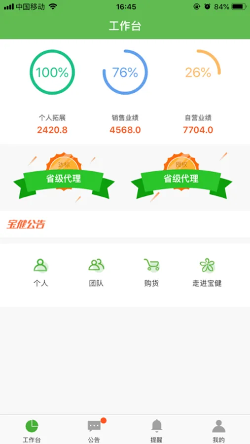 i宝健是宝健(中国)有限公司为全体合作伙伴开发的专属移动APP,包含我的、提醒、公告、工作台四大模块,全面涵盖个人及销售队伍信息、公司动态、线上购物、在线拓展等功能,是全体合作伙伴了解宝健、激励自我、发展事业的好帮手!