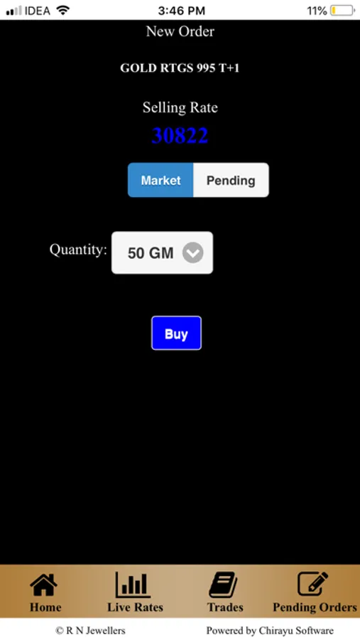 The App also allows you to put Market Order or Order with a limit price.