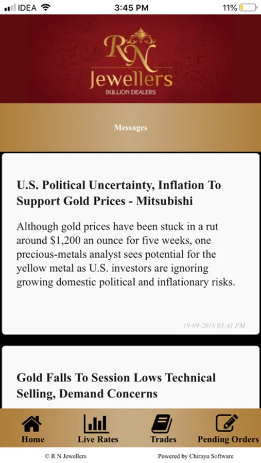 The R N Jewellers iOS App is an application which brings you Real-time Live Streaming Rates of Mumbai Gold Bars and Coins.