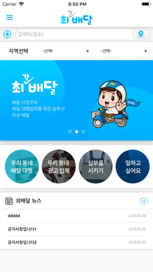 [최배달]어플을 통해 배달대행업체는 본인들의 회사를 홍보및소개 할수있는 공간을 만들어 배달사업주들이 간편하고 편리하게 이용할수있도록 하는게 목적입니다