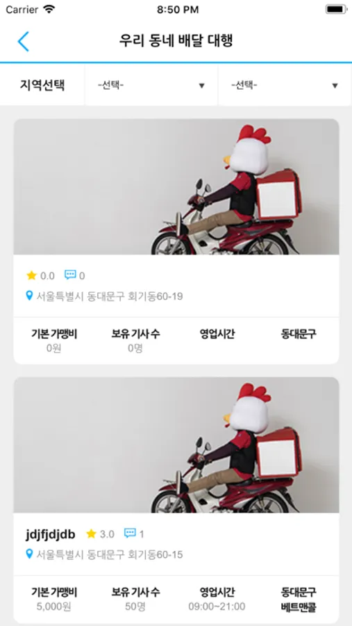 배달사업을 시작하려는데 주변지역의 배달대행업체의 정보를 모르시는 사장님들~