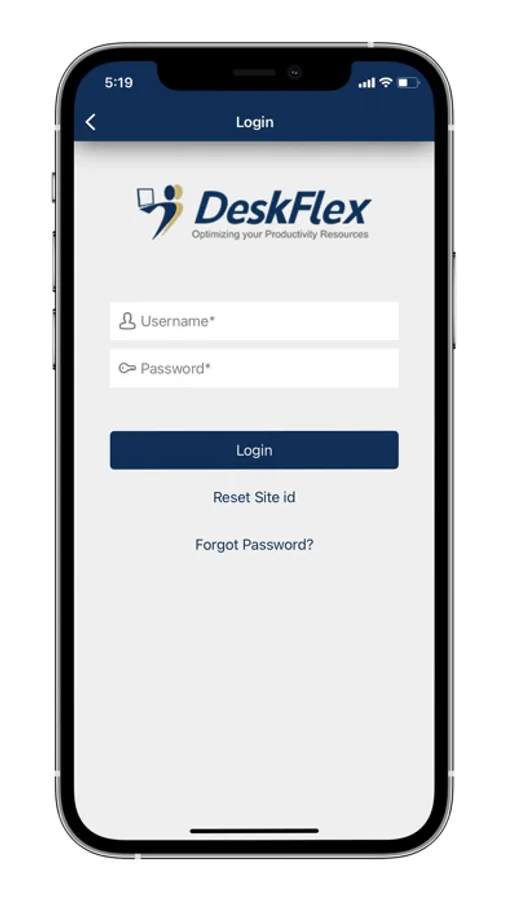 Deskflex User can now efficiently manage desk, equipment and room space utilisation using the desk flex mobile app. The app let users check for desk or space availability, make reservations, and modify or cancel their bookings. Users can use their desk flex credentials to login contact your desk flex administrator to create a new account.