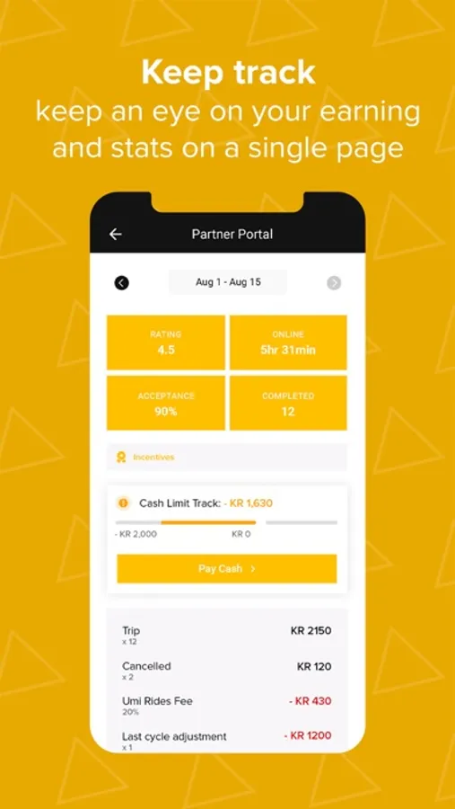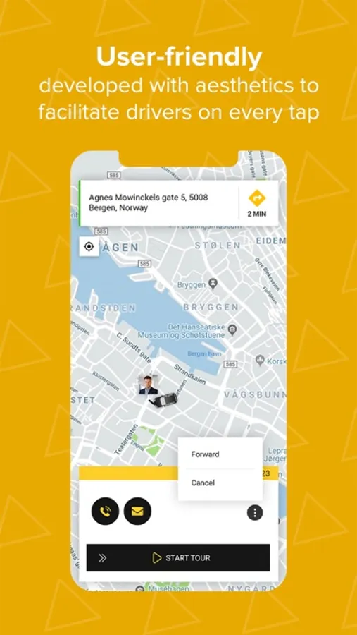 So what you’re thinking, register yourself today by downloading our app and start earning with us. Keep track of how much you’re making after every trip, right on the map. Schedule driving around Bergen and plan your days easier with estimated times until your next request and a forecast of rider activity in your area over the next 24 hours.