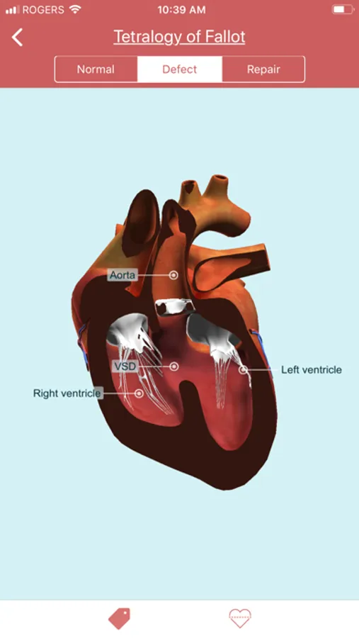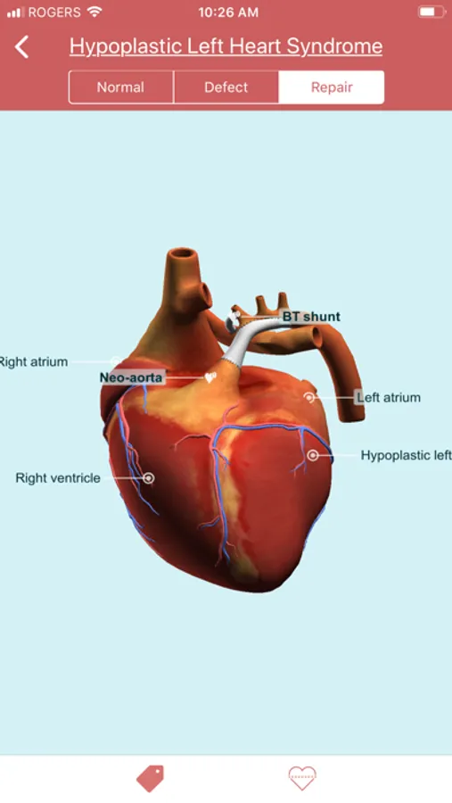View anatomically-correct 3D models for a normal, defective and repaired heart. Listen to their corresponding heart murmurs, watch video animations and learn more through audio and text descriptions.