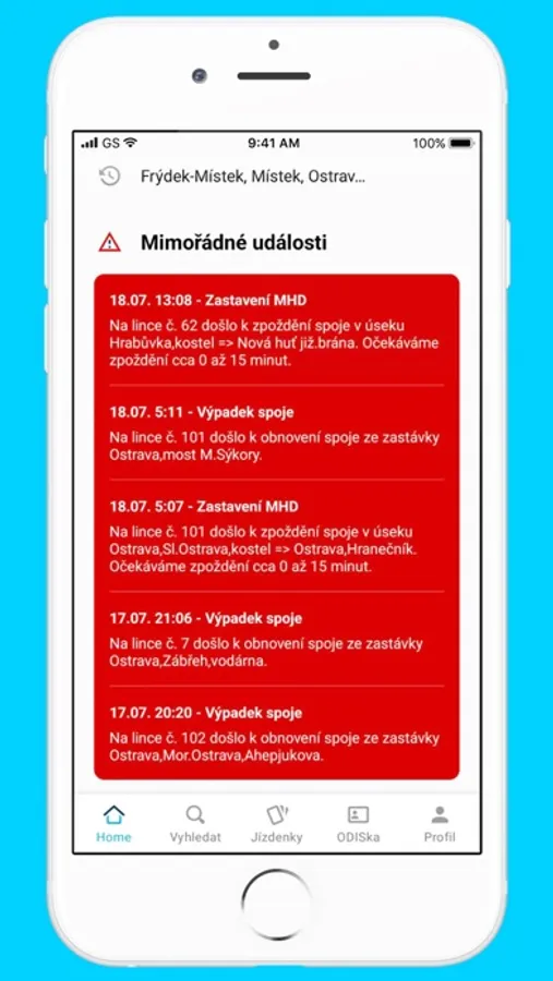 - Neustále aktualizovaná data o výlukách a jiných mimořádných událostech v MHD.