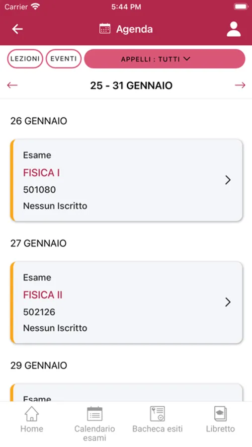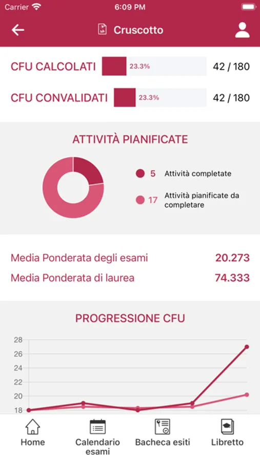 Una volta effettuato il Login l’utente potrà accedere al proprio profilo. Qui sarà possibile, tra le altre cose, iscriversi a un esame, segnalare la propria presenza in aula alle lezioni, essere aggiornati sugli orari delle lezioni ed avere informazioni relative alla propria carriera universitaria.