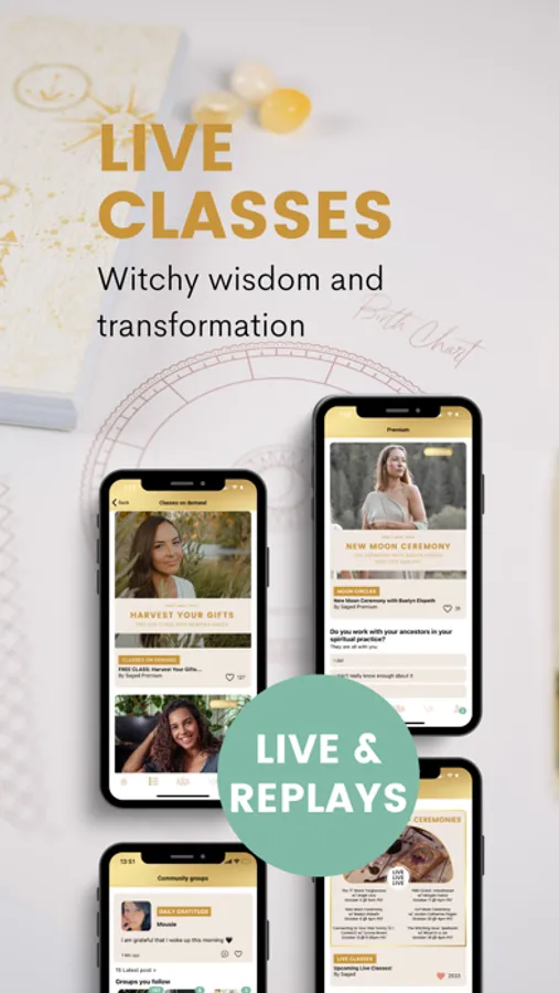 * Live Classes on the intuitive arts, herbalism, shadow work, channeling, dreams, human design, and much more
