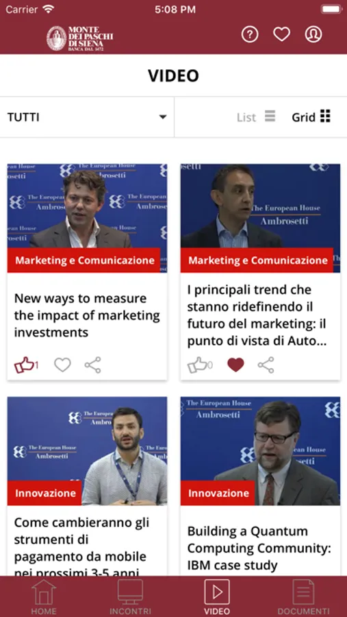 All'interno dell'app MPS Academy, vengono pubblicati i contenuti multimediali prodotti da The European House Ambrosetti.