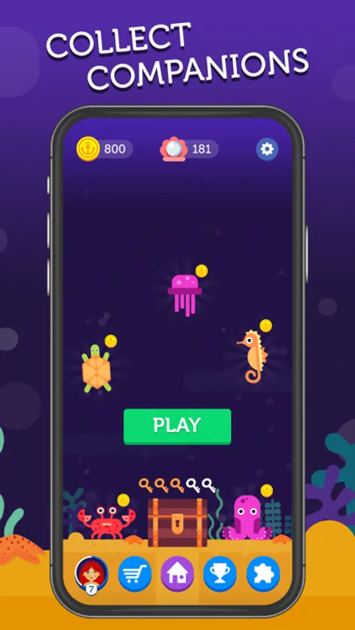 – Find keys on the seabed and unlock old treasure chests to discover amazing rewards!
