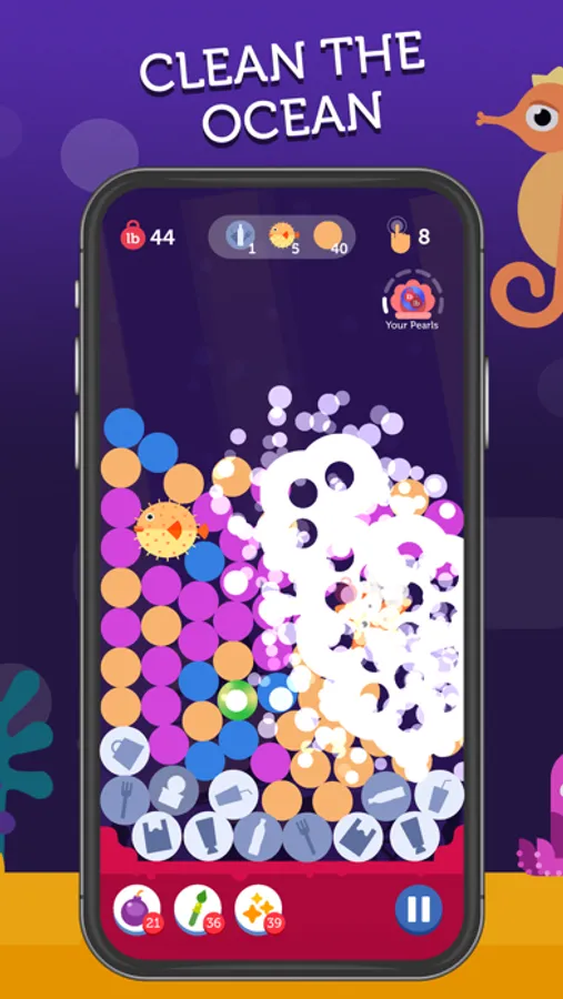 – Clean the ocean from waste by popping plastic bubbles with a simple tap!