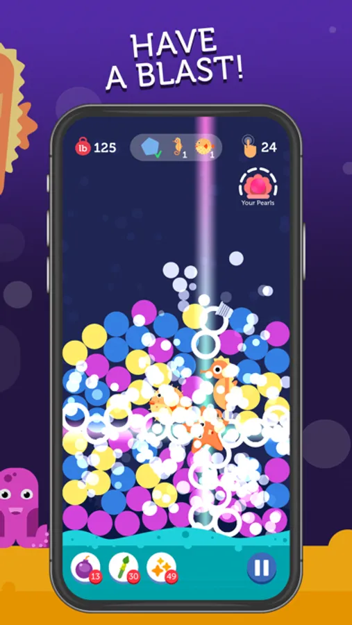 – Hit the Starfish Streak by popping enough bubbles in a row and annihilate all of the plastic from the screen – plus some bonus coins!