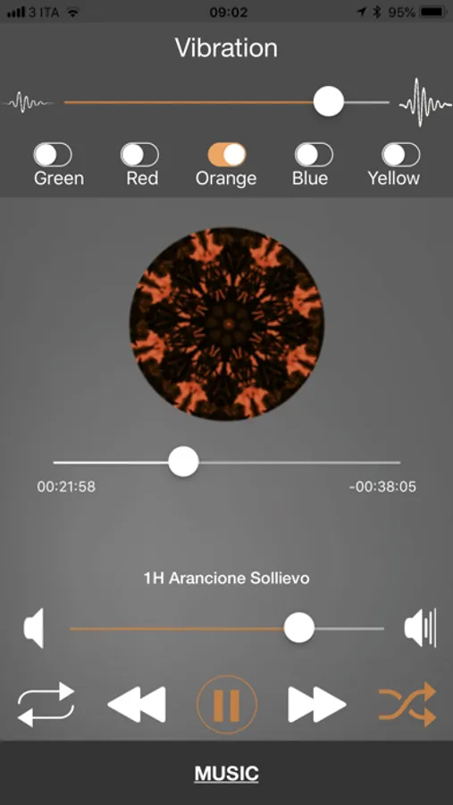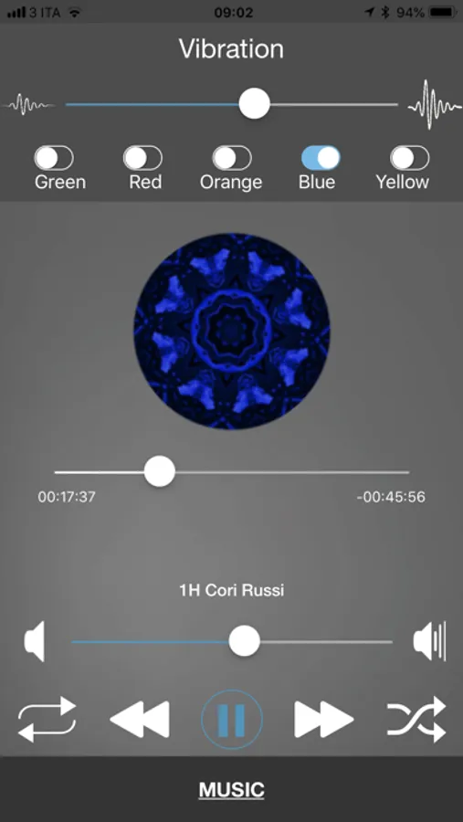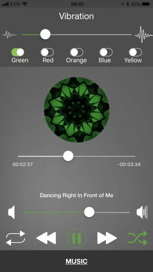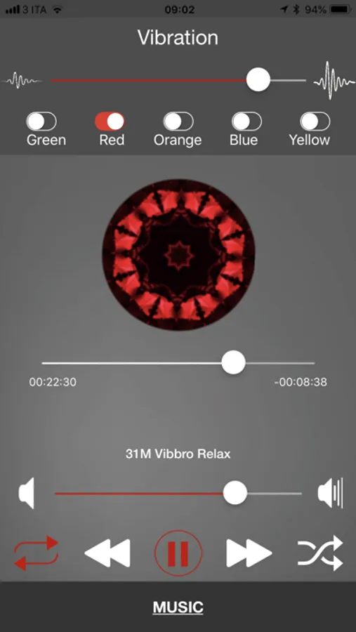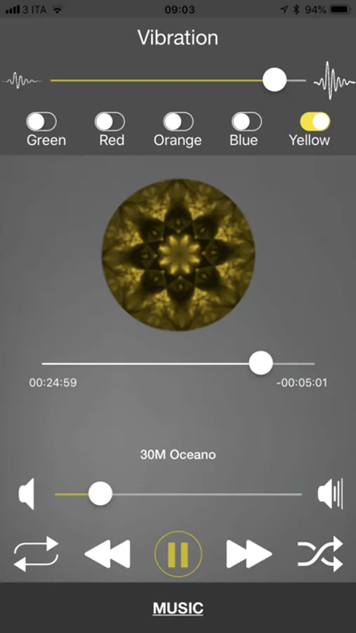 - Choose from the 5 coded vibrational matrices and adjust their intensity