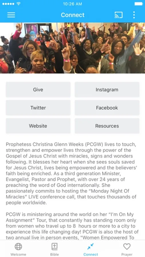 Enjoy this PCGW Ministry App for special conferences and tour city information, FREE signup event forms, ministry itinerary, booking, digital downloads, special announcements, live events, to donate and more. Also, join her on Social Media especially on her 'Facebook Like Page' click here, Twitter click here and Instagram click here.