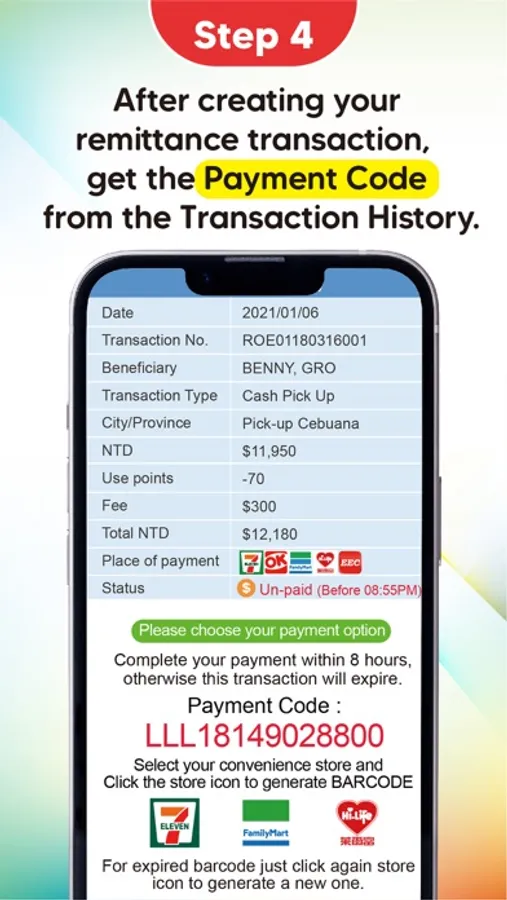* For convenience store payment, use the payment code found in your transaction history and key in on the IBON machine or respective payment kiosk of your chosen convenience store. Print the receipt and pay to the cashier.