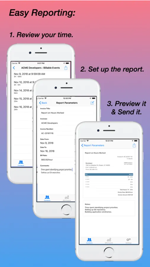 You can send a weekly invoice for your time with just a few of taps on your phone.