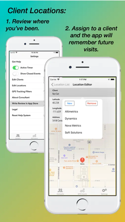 Let your iPhone remember how long you spend at a client site using CoreLocation.