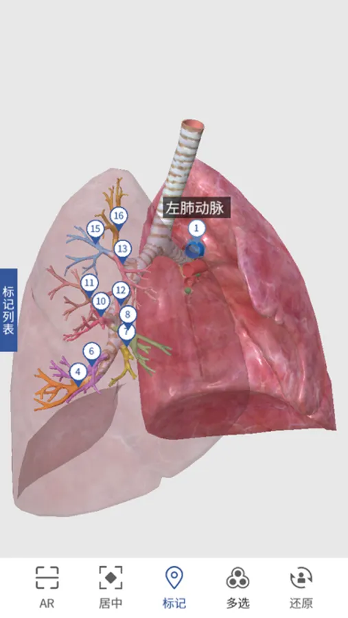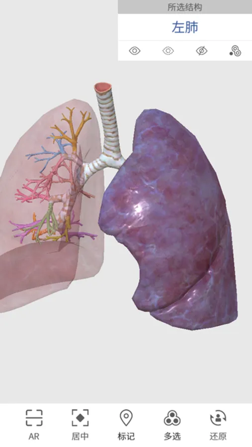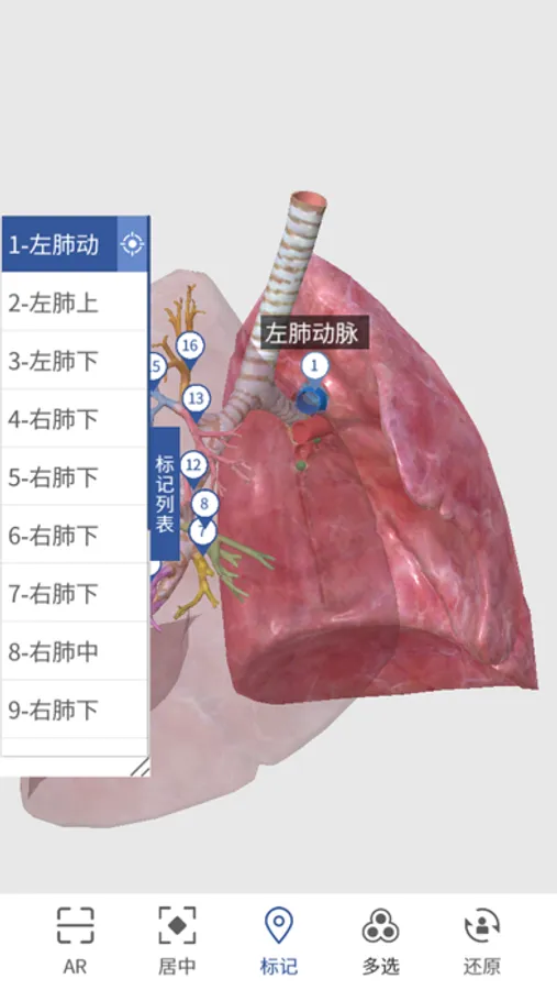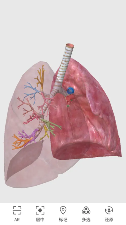 软件内提供由2000多个模型组成的数字人体,可根据用户的识别结果自动组成出对应的解剖模型