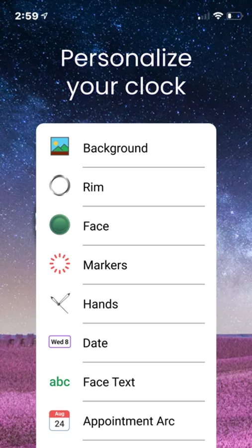 - Customize the clock in many ways with your own rim, face, hands and much more