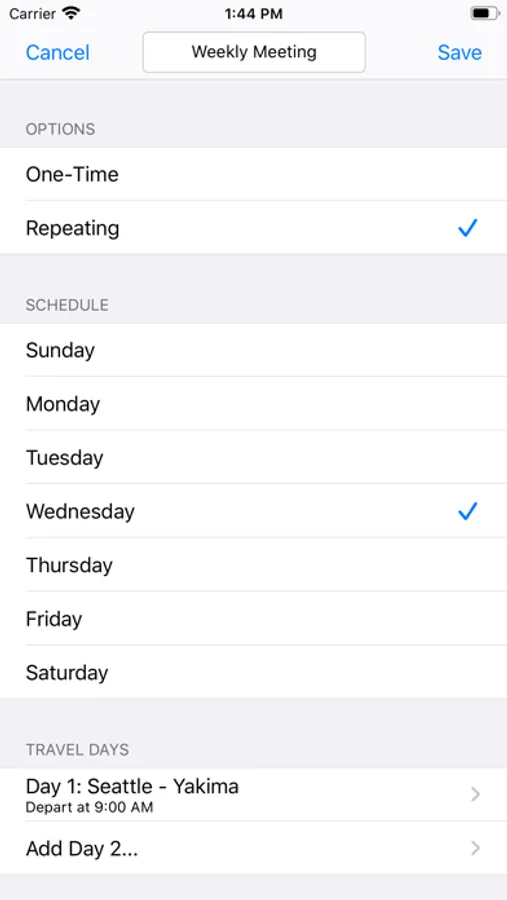 • Create trips that automatically repeat on certain days each week.