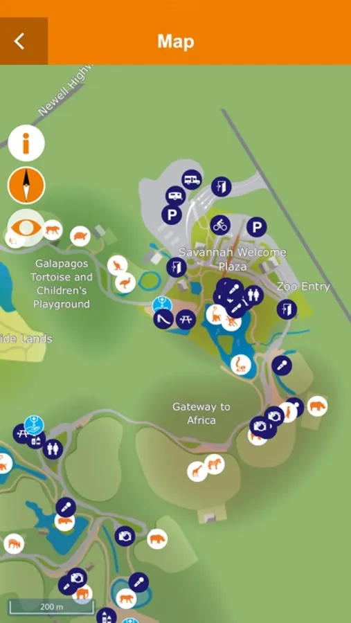 - The Interactive Map shows your location in the Zoo, gives you directions and estimates distance to animals, events and facilities.