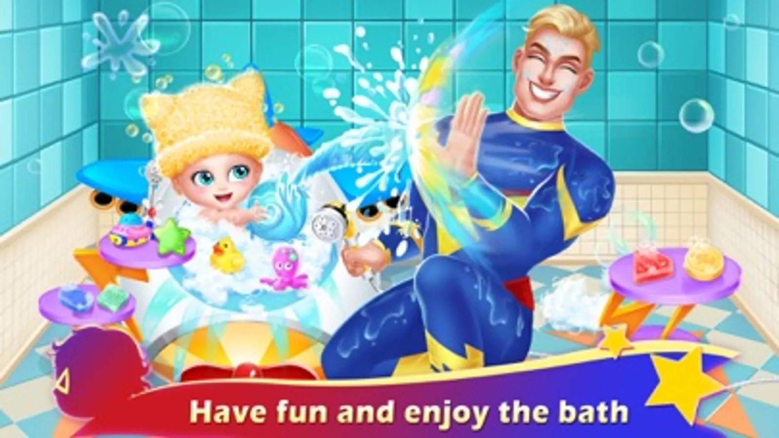 The little bundle of joy, born with extraordinary powers, could double the fun and troubles that a newborn brings to the family. What would happen if dad looks after the newborn when mom is out to save the world? Bathing the newborn, making delicious food, cleaning up messy living room, going for an adventure… Will dad get the hang of taking care of the newborn? Let's go check it out!