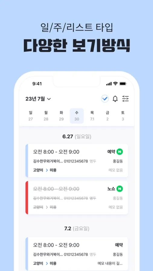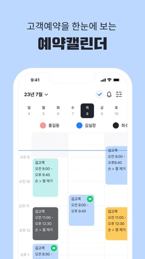 - 예약관리를 통해 예약 정보를 손쉽게 관리할 수 있어요! 예약별 상태 설정을 통해 예약 구분도 쉽게 해보세요.