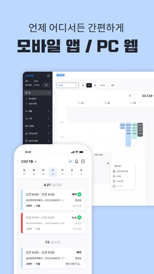 샵 관리의 꼭 필요한 기능을 웹/앱 모두 편하게 제공합니다.
