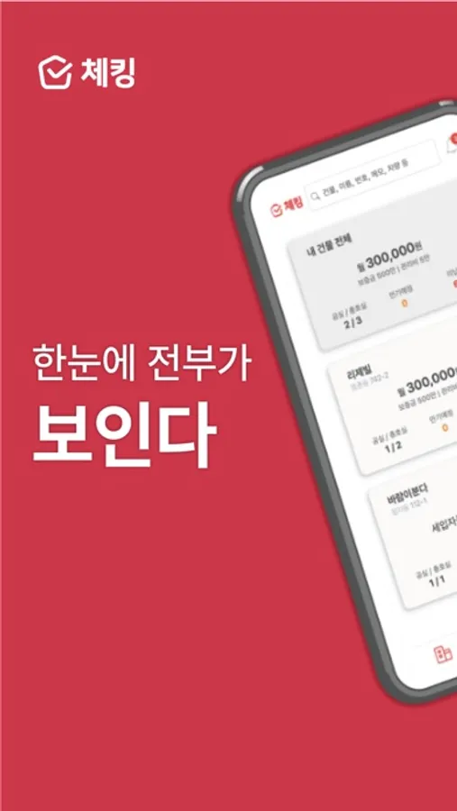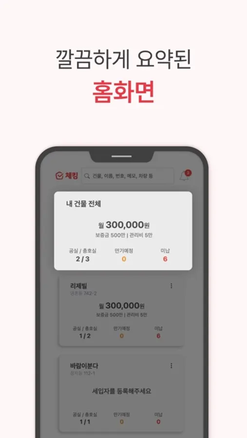 체킹은 임대정보를 잘 보기 위해 정리된 화면과, 임대관리에 꼭 필요한 기능만 있습니다.