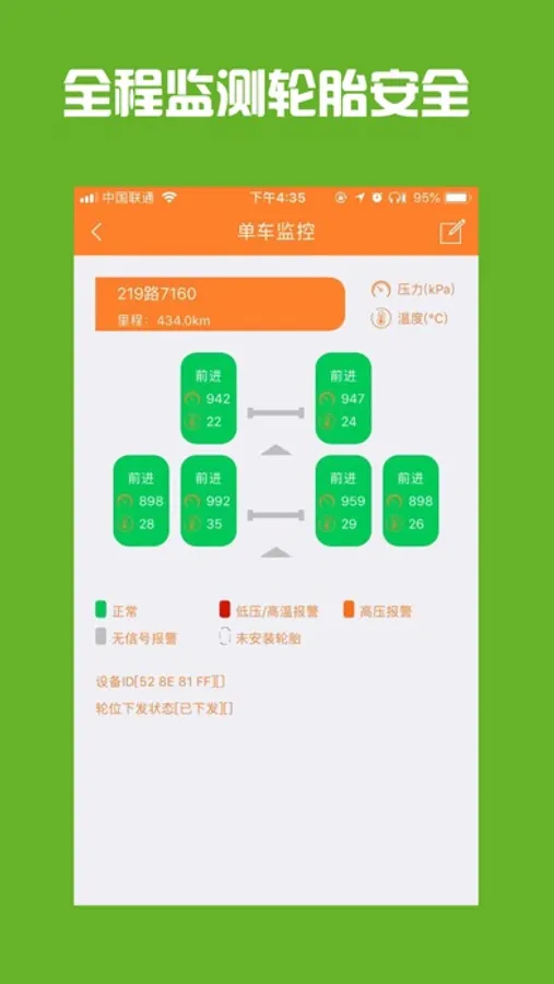 车队或者公交公司车辆管理轮胎,监测轮胎气压,胎温,远程查看轮胎详细情况。形成轮胎全生命周期报表,CPK报表,不同轮胎的对比数据等。功能详情:
