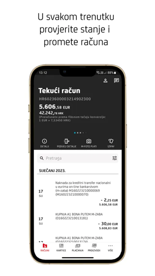 • provjeravati stanja i promete po računima, štednjama i kreditima