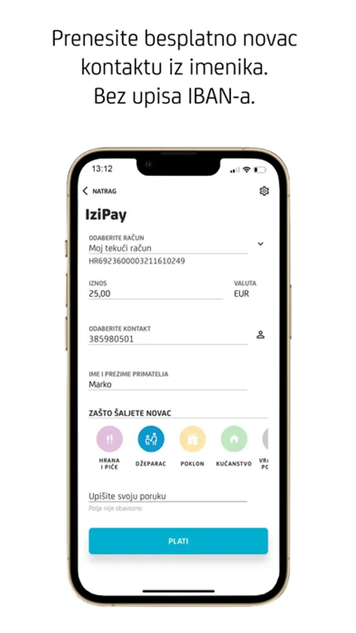 • na najjednostavniji način prenositi novac uslugom IziPay; dovoljno je znati broj telefona primatelja