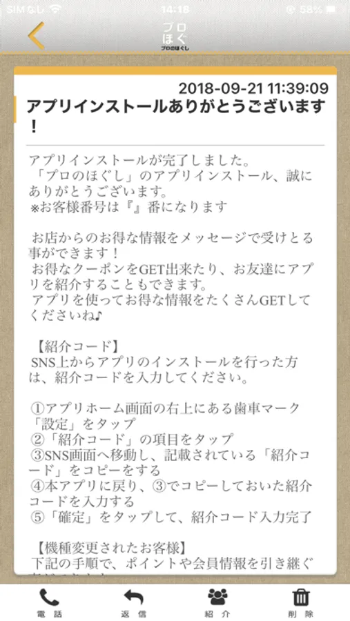 プロのほぐしのアプリをSNSを通じてお友達に紹介する事ができます。