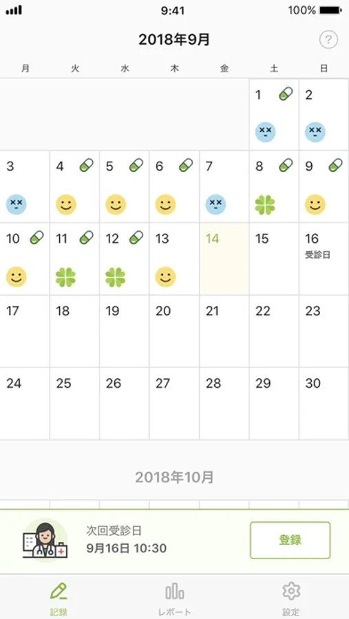 ・通院をしている場合、次回の受診日を設定可能。前日に通院日をお知らせします(通知設定をオンにした場合)