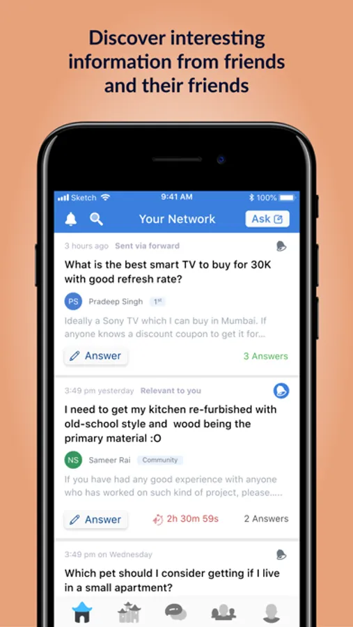 Find relevant questions where you can advise or assist by sharing answers and advice that help you network. Each answer will help a friend find credible information they care about. The more you advise, the more you’re recognized for your insights. Plus, everytime you answer back and assist, you support making your entire network more informed.