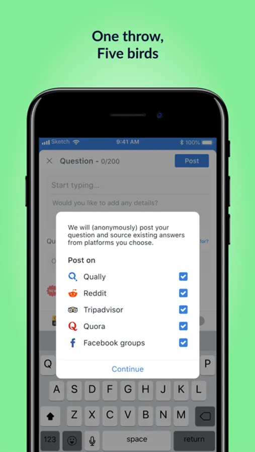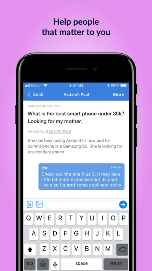 Just ask your question, and it’s routed to the pool of your friends on Qually that can help.