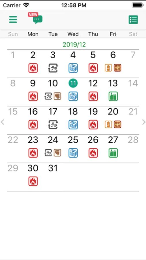 The garbage collection schedule can be checked on one screen in three patterns: Today and tomorrow, by week, and by month.
