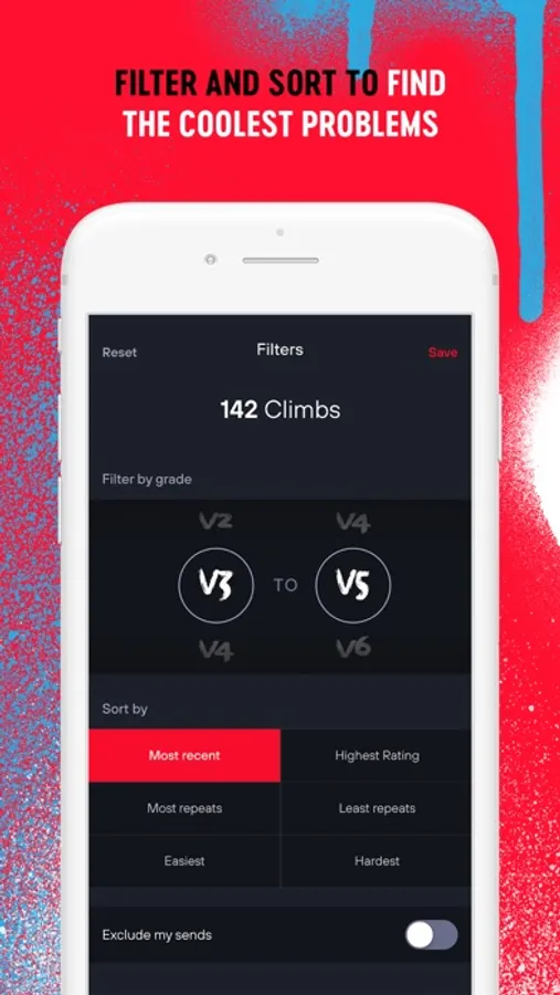 Navigate through climbs using specific styles and use these styles as filters to find your next challenge.